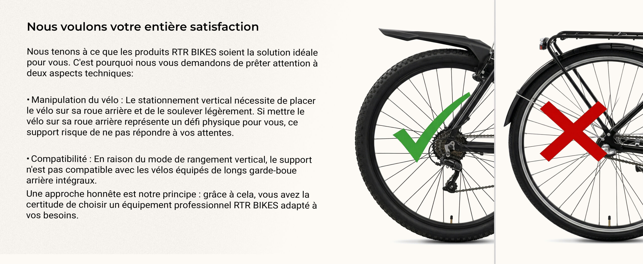 QUALITÉ PREMIUM MADE IN EU: Conçu et fabriqué en UE par RTR BIKES. Le système de maintien fixe les vélos par les pneus de manière extrêmement stable et protège de manière fiable les cadres en carbone, les rayons et vos précieuses jantes contre les rayures.