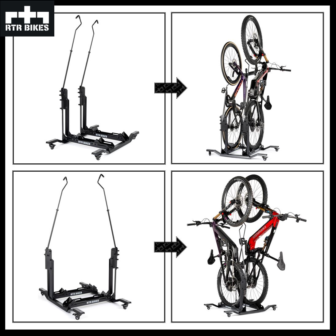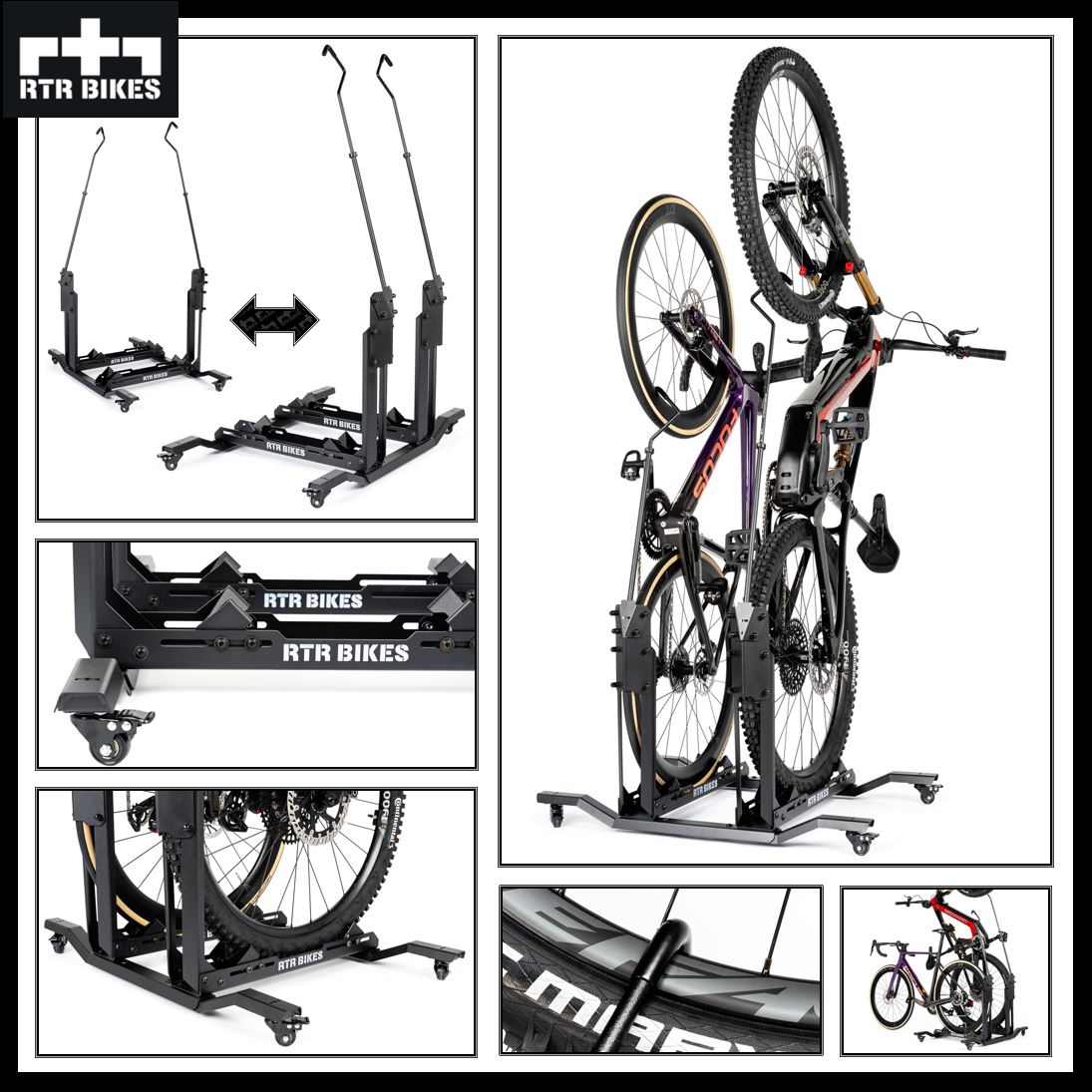 Brakuje Ci miejsca w garażu lub mieszkaniu? Masz dość podnoszenia ciężkich rowerów elektrycznych i wiercenia dziur w ścianach? RTR BIKES Double Up to innowacyjny, mobilny stojak podłogowy, który na zawsze rozwiąże Twoje problemy z parkowaniem dwóch jednośladów.