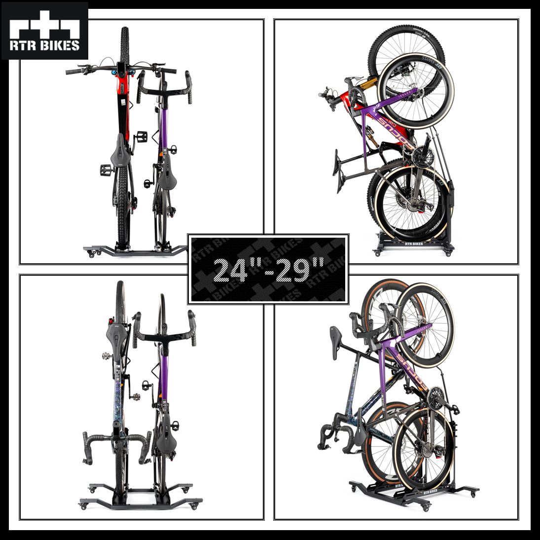 - Podwójna pojemność: Bezpiecznie i stabilnie trzyma dwa rowery w pozycji pionowej obok siebie.