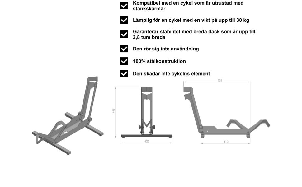 STABIL: Ställets struktur och de använda materialen garanterar hög stabilitet vid cyklar som väger upp till 30 kg, säker förvaring av cyklar och möjlighet att tvätta cykeln under högt vattentryck utan risk för vältning.